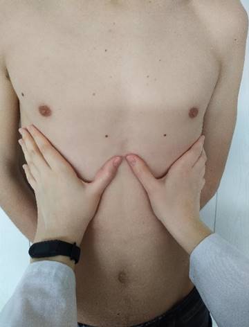 може спостерігатись поздовжнє заглиблення груднини («човноподібна грудна